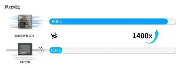 据程唐盛介绍,200mmx200mm的玻璃光计算芯片算力可达2600POPS,是ASIC芯片的1400倍,是GPU的1300倍,根据AI推理市场需求和工艺发展趋势预测芯片尺寸仍有数倍扩大空间。